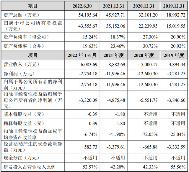 业绩方面,华脉泰科于2019年、2020年、2021年及2022年上半年分别实现营收4894.44万元、5000.17万元、8882.69万元、6083.69万元;实现归母净利润分别为3281.25万元、-1.26亿元、-1.20亿元、-2754.18万元。